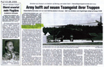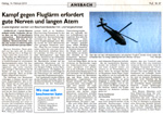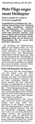 In die Illesheimer Storck-Kaserne werden für jeweils neun Monate weitere Hubschrauber-Einheiten aus Amerika verlegt, um ihre Flexibilität zu verbessern. Diese umfassen rund 1900 Soldaten mit 90 Hubschraubern. Von diesen Soldaten sind jedoch rund die Hälfte, von den Hubschraubern zwei Drittel ständig bei Manövern in Ost und Südosteuropa. Wie ein Flug von Ansbach-Katterbach nach Illesheim aus der Sicht der Piloten abläuft, stellen wir auf der übernächsten Seite vor. |