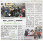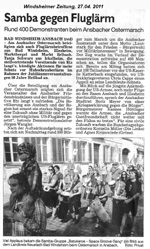 Samba gegen Fluglärm. Am Ansbacher Ostermarsch beteiligten sich auch Fluglärmbetroffene aus Bad Windsheim, Illesheim, Marktbergel und Markt Erlbach.