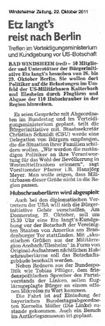 US-Armee verstärkt die Nachtflüge. Bürgerinitiative bekommt internes Kommissionsprotokoll. Undichte Stelle beim Militär. |