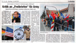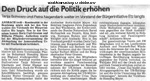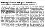 Überrascht zeigte sich der Kreisvorstand der Bürgerinitiative "Etz langt's!" über die Weigerng der US-Offiziere bei deren Auftritt der Kommandanten der US-Basen Katterbach und Illesheim im Ansbacher Stadtrat, Unterschriftenlisten von Bürgern aus Stadt und Landkreis Ansbach sowie aus dem Landkreis Neustadt/ Aisch - Bad Windsheim entgegen zu nehmen. |