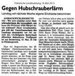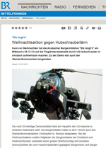 Bürgerinitiative "Etz langt's! klagt über massive Zunahme der Helikopter-Übungsflüge in Ansbach. Fluglärm wieder auf dem Vormarsch. Anwohner aus Obereichenbach berichtet von Fünf-Tage-Woche — Training bis weit nach 22 Uhr. |