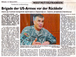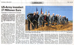 In Katterbach sind rund zwei Drittel der Brigade, deren Trainingsraum ganz Süddeutschland umfasst. In der Storck-Kaserne in Illesheim kommt in einer ähnlichen Größenordnung eine jeweils für neun Monate aus den USA nach Westmittelfranken verlegte Hubschraubereinheit dazu. Für flotte Rhythmen bei der Zeremonie sorgte die einzige noch in Europa verbliebene Army- Band aus Wiesbaden. |