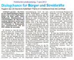 Etz langt's! will Öffentlichkeit! Eine Beteiligung an "Lärmschutz"-Tagungen fordert der "Etz-langt's!"-Kreisverband Neustadt/Aisch-Bad Windsheim. Als "widersprüchlich und inkonsequent" kritisierte der Kreisverband das jüngste "Lärmschutz"-Treffen in Illesheim. Außer in Illesheim und Ansbach würden alle Lärmschutzkommissionen in Deutschland — wie beispielsweise in Mannheim — öffentlich tagen.