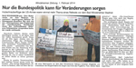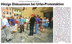 Gestern Mahnwache gegen US-Fluglärm vor dem Ansbacher Stadthaus. Der US-Kommandeur betrat das Gebäude durch den Nebeneingang. "Vielleicht später" werde er die Resolutionen und Unterschriftenlisten entgegennehmen, beschied er den Aktivisten. |