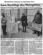 Bittere Gratulation: Bad Windsheim einziges Heilbad mit garantiertem Fluglärm. So hatte es eine Demonstrantin gegen die Übungsflüge der US-Helikopter auf ihr Plakat geschrieben, mit dem sie im Kreis von etwa 40 Mitstreitern auch aus Ansbach und Rothenburg die Gäste des Jubiläums-Galaabends darauf hinweis, dass es eigentlich nichts zu feiern gebe. |