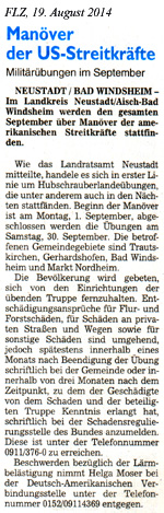 Als Übungszeitraum gibt die US-Army den gesamten Monat August an, die betroffenen Gemeindegebiete seien Gallmersgarten, Markt Erlbach und Uffenheim.